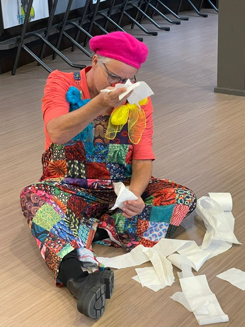 Toet is een vrolijke en empathische clown die op een respectvolle, open en liefdevolle manier, ontmoet, afstemt en verbindt.