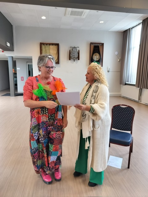 Diploma uit handen van Contact Clown Kiki